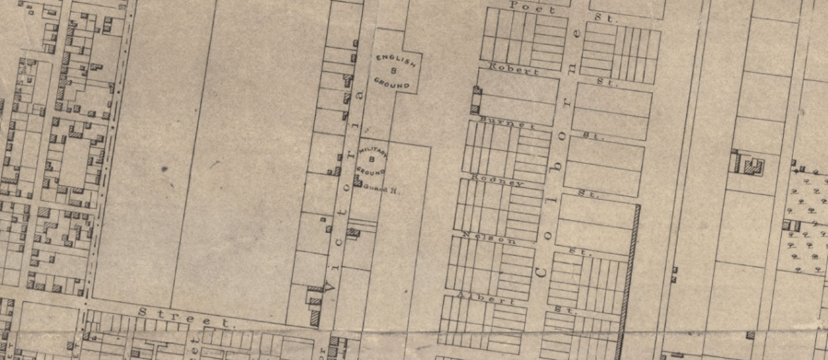 [xiv] St Mary’s Protestant Burial Ground (English B Ground), excerpt from R.W.S. MacKay (ed), Topigraphical and pictorial map of the city of Montreal, 1846, Collection Saint-Sulpice; (Bibliothèque et Archives nationales du Québec (BanQ), https://collections.banq.qc.ca/ark:/52327/2244457; accessed 18 Feb 2023). Website for “Parc des Vétérans”, Ville Marie (https://montreal.ca/lieux/parc-des-veterans; accessed 18 Feb 2023).
